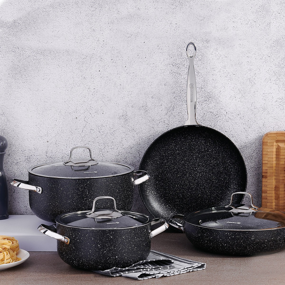 سرویس قابلمه گرانیت کرکماز KORKMAZ-A1877 یک مجموعه قابلمه و تابه با طراحی مدرن و کیفیت بالا از برند معروف ترکیهای کرکماز است. این سرویس شامل چندین قابلمه و تابه با پوشش گرانیتی و درب شیشهای است که تجربهای راحت و لذتبخش از آشپزی را فراهم میکند. در ادامه، ویژگیها و مشخصات این سرویس قابلمه را توضیح خواهیم داد.