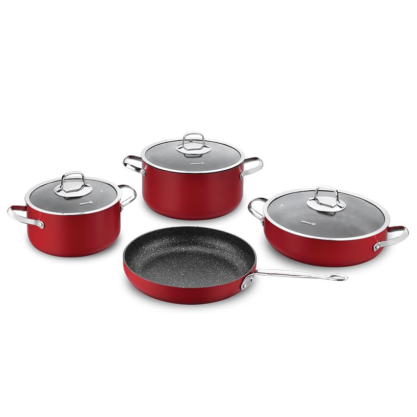 - جنس بدنه مقاوم: قابلمه و تابه ها از آلومینیوم با پوشش گرانیتی ساخته میشوند. این جنسها مقاومت بالایی در برابر حرارت دارند و علاوه بر سبک بودن، بهراحتی حرارت را پخش میکنند، که باعث پخت یکنواخت غذا میشود.
