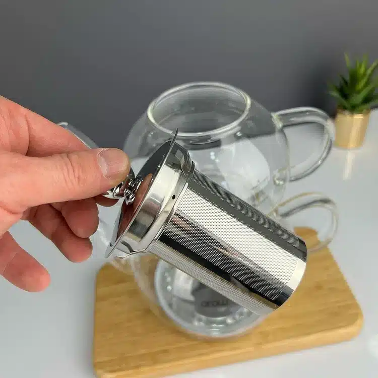 - صافی استیل ضد زنگ: قوری دارای صافی استیل ضد زنگ است که از هرگونه ذرات ناخواسته جلوگیری میکند و طعمی خالص از چای را ارائه میدهد.