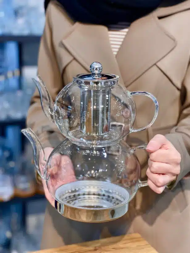 این کتری قوری ساخته شده از بروسیلیکات (پیرکس حرارتی) است که مقاومت بالایی در برابر حرارت و تغییرات دما دارد.